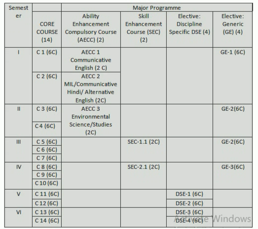 Details of Course of the B.A. Non-Honours Programmes in CBCS