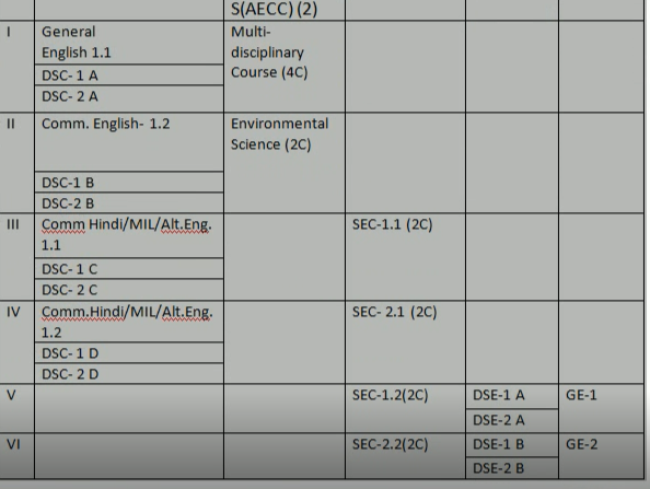 SEMESTER WISE DISTRIBUTION OF COURSES IN BA HONOURS (CBCS)